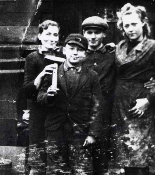 Günther Schwarz (vorne links) im November 1942 in seinem Lehrbetrieb: Der im August 1928 geborene Günther wurde am 10. Oktober verhaftet und war der Jüngste unter den Opfern des 10. November 1944