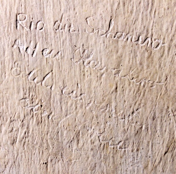 Einritzung in einer Zelle im Gestapo-Gefängnis im EL-DE-Haus, 1943/44: "Rio die Schanero - Aheu Kapalero - Edelweipiraten sind treu"