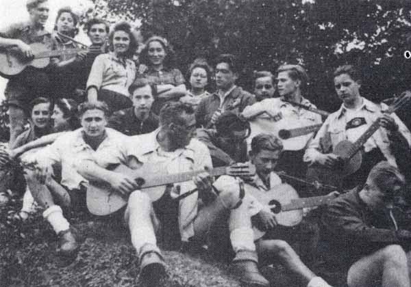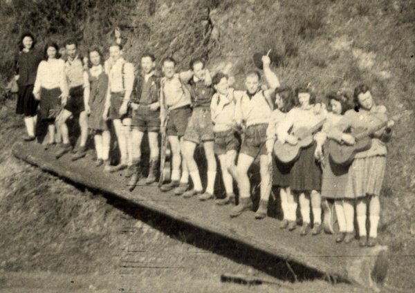 Treffen Von „Edelweißpiraten“ aus Wermelskirchen und Köln-Sülz Anfang der 1940er Jahre (3.v.r.: Gertrud „Mucki“ Kühlem)